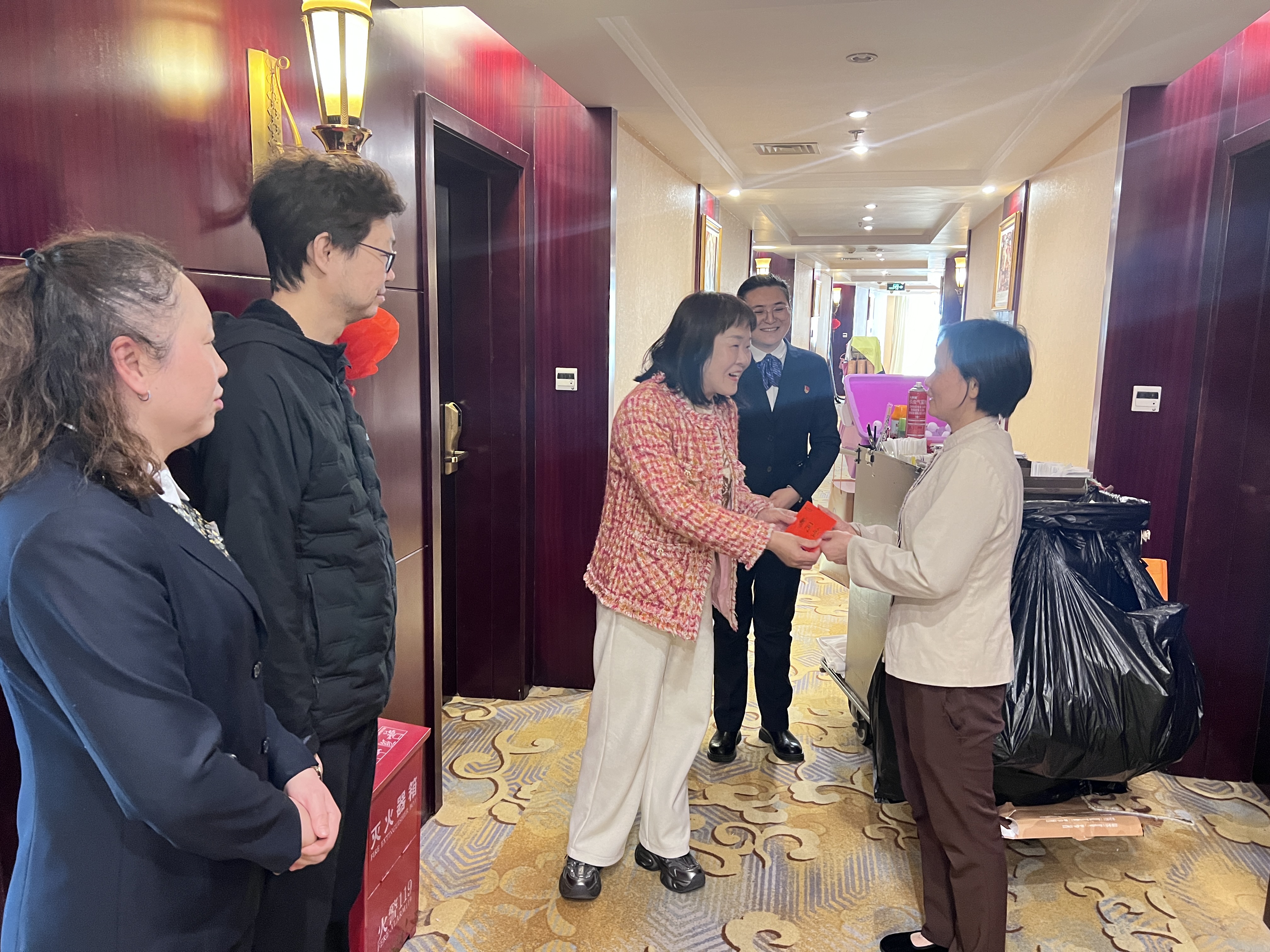 为切实把工会组织的温暖送到职工身边,2月26日,川煤集团广元片区工会联合会女工委主任蒲翠琼赴广元国际大酒店开展困难女职工关爱慰问走访工作,并送上慰问金与新春祝福,把组织的温暖送送到职工心坎上,广元国际大酒店工会主席李化及相关人员陪同。