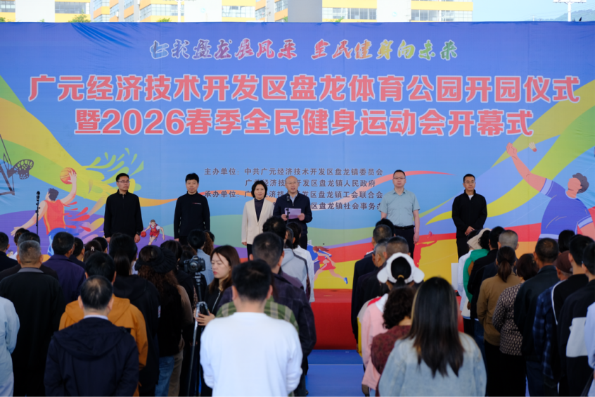 4月16日,广元经开区盘龙镇2026年春季全民健身运动会在盘龙体育公园隆重开幕。本次运动会以“七彩盘龙展风采 全民健身向未来”为主题,辖区18支代表队、300余名运动员参赛。