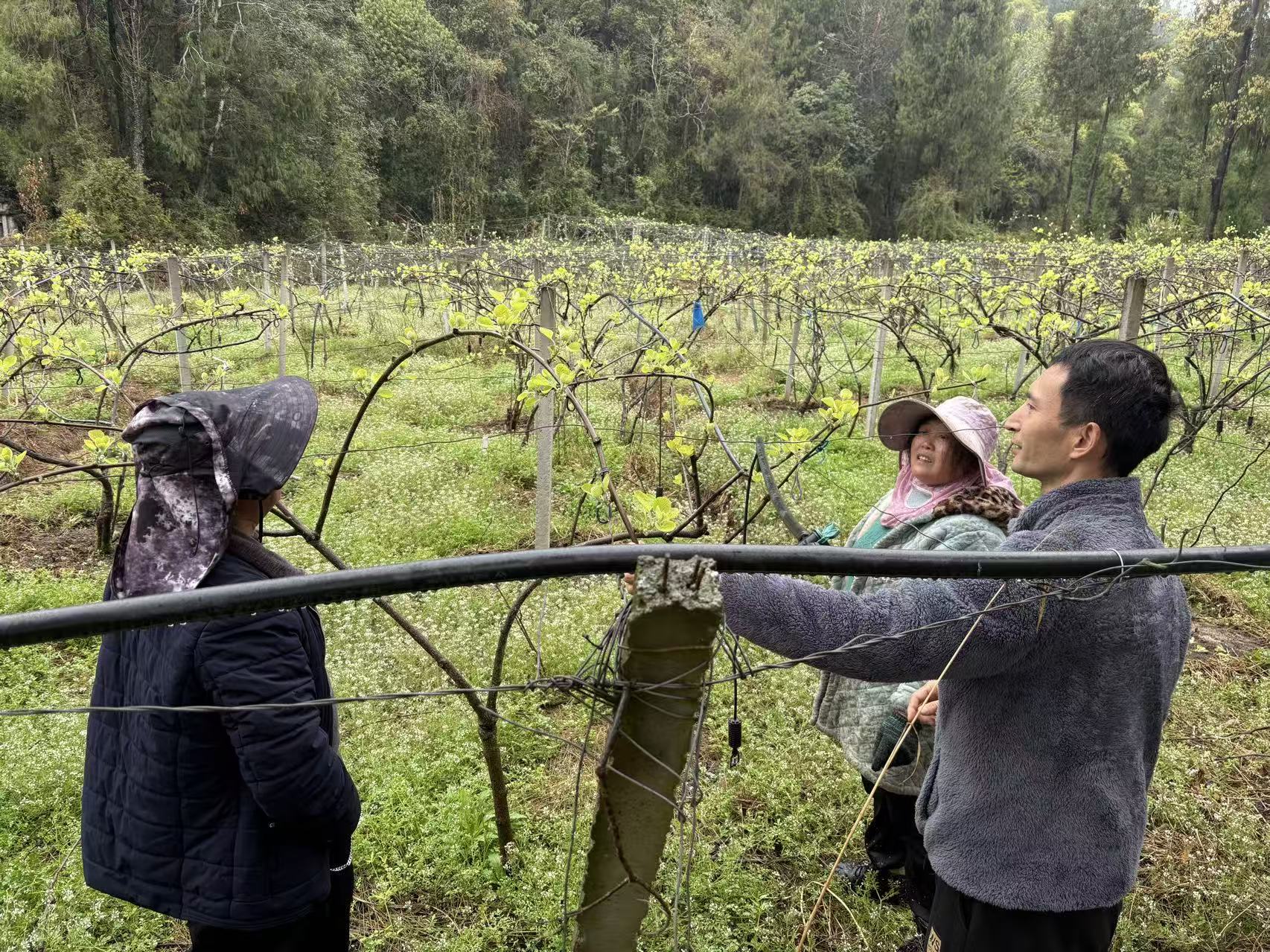在李利军抵达基地前,旺苍县总工会已经通过相关渠道对猕猴桃种植户的技术需求有所了解。在去年11月,李利军随旺苍县总工会深入包括木门镇天星村在内的猕猴桃种植大户,开展冬季管理培训,他重点讲授了冬季修剪与清园技术,为来年的丰收打下了基础,此时正值初春,气温回暖,猕猴桃物候期较往年有所提前,春季的抹芽定梢、水肥管理和病虫害防控成为当务之急。