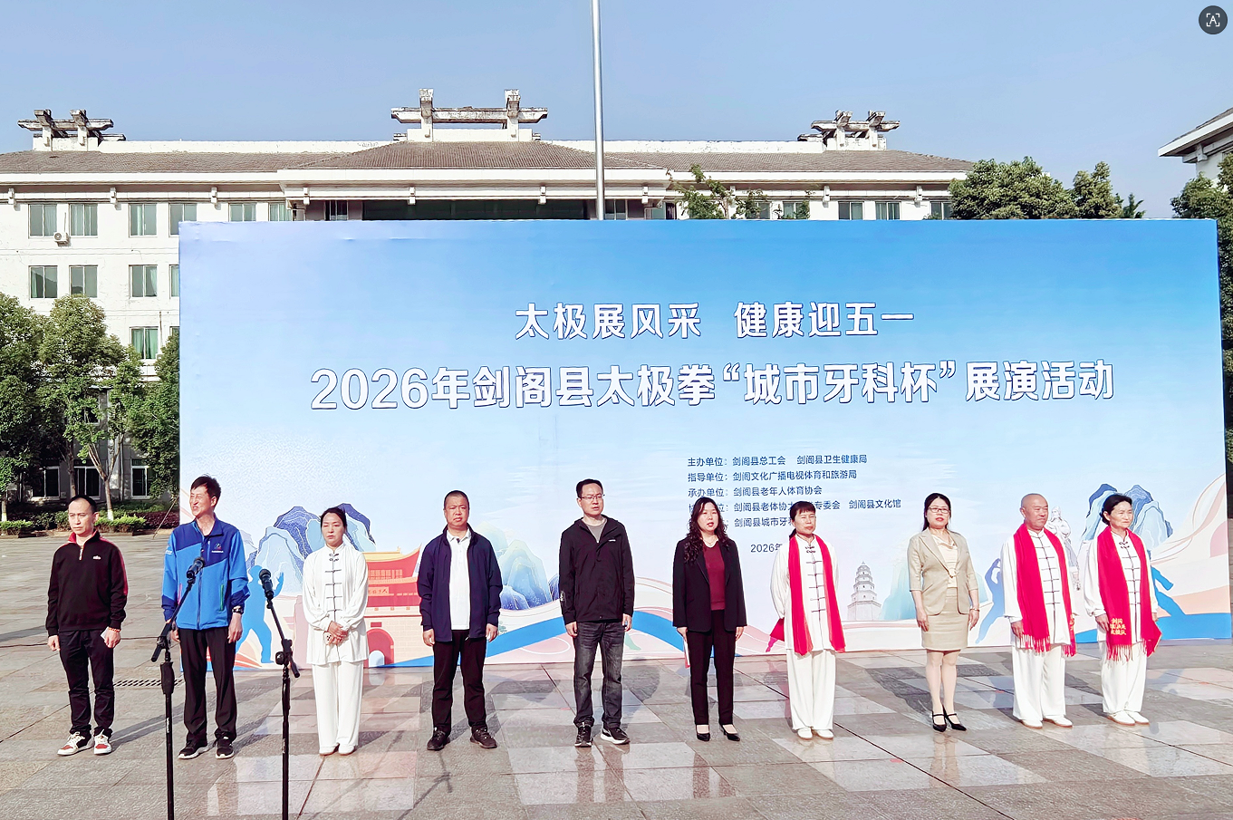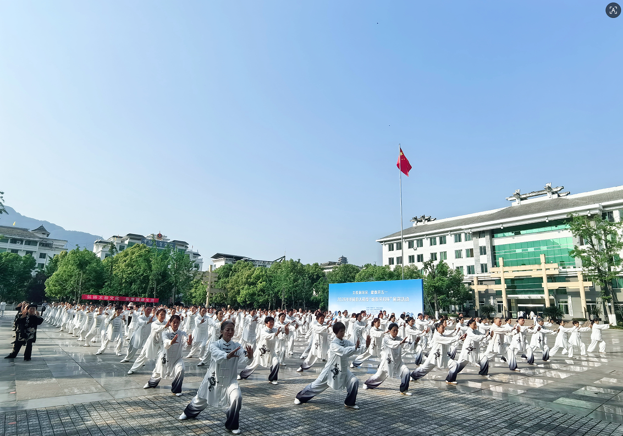 4月25日,剑阁县“太极展风采 健康迎‘五一’”太极拳展演活动在县政府行政中心广场举行。此次活动由县总工会、县卫健局联合主办,县文广体旅局指导,旨在弘扬传统武术文化,推进全民健身,丰富职工精神文化生活。
