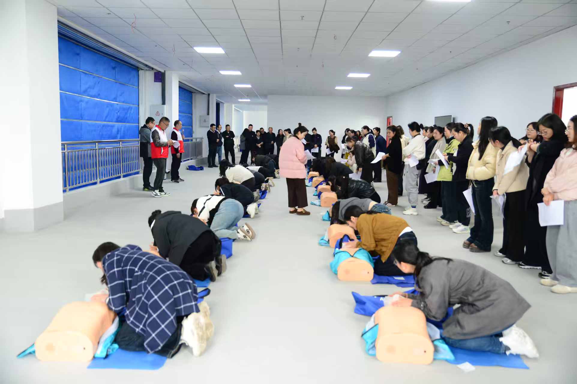 在县鳌鱼湾红十字应急救援救护培训基地内,平日里奋战在人社服务一线的女职工们,此刻化身为专注的“急救学员”,大家围绕心肺复苏(CPR)等实用技能进行了深入的理论学习和实操演练。通过模拟人道具和情景演练,女职工们不仅掌握了关键时刻能救命的“黄金四分钟”技能,更在团队协作中增进了默契。
