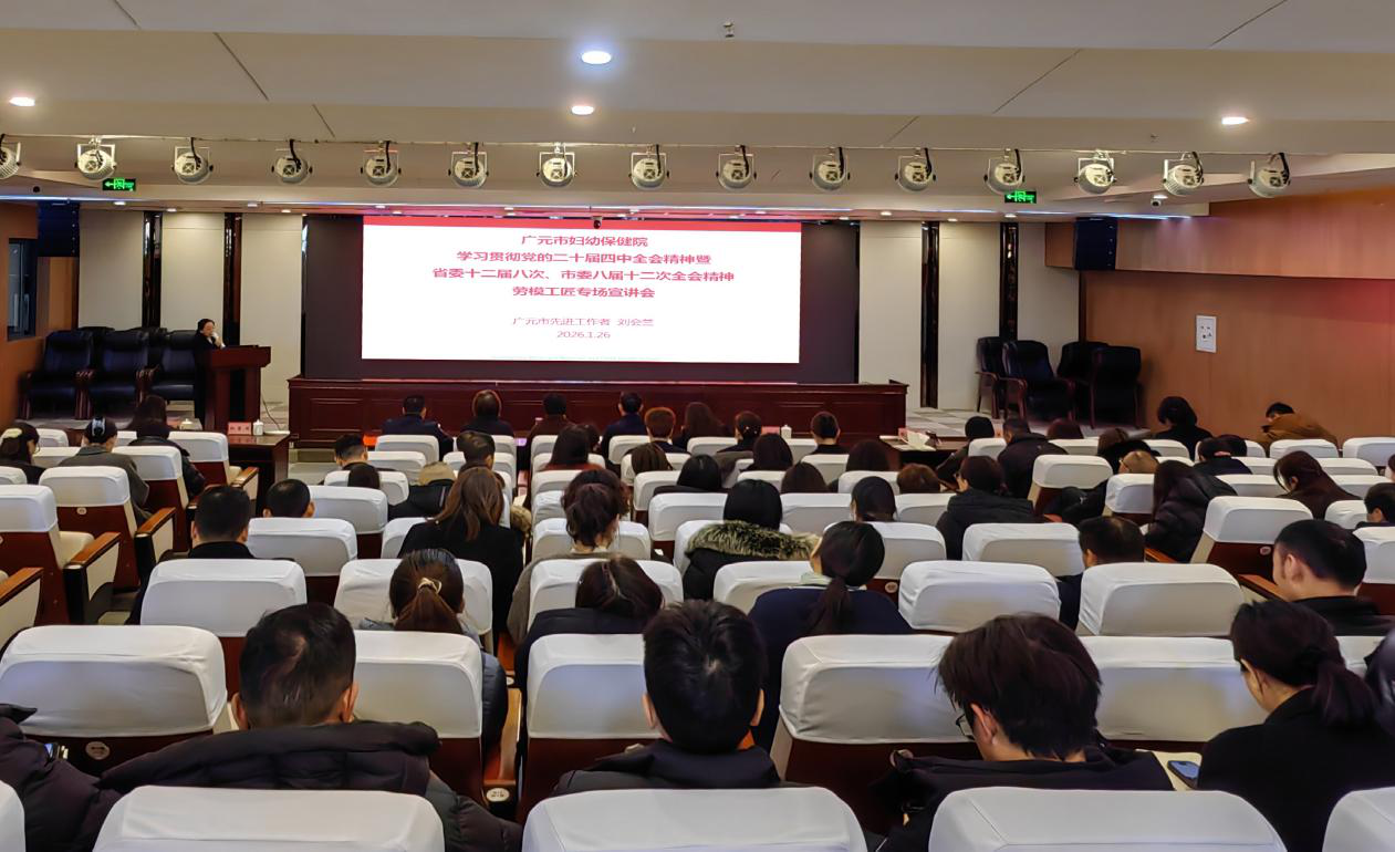 1月26日,广元市妇幼保健院举办学习贯彻党的二十届四中全会、省委十二届八次全会及市委八届十二次全会精神劳模工匠专场宣讲会。广元市劳模工匠宣讲分团成员、市先进工作者、产科主任刘会兰以“坚守医者初心,勇担时代使命”为主题,面向全院100余名职工作专场宣讲。