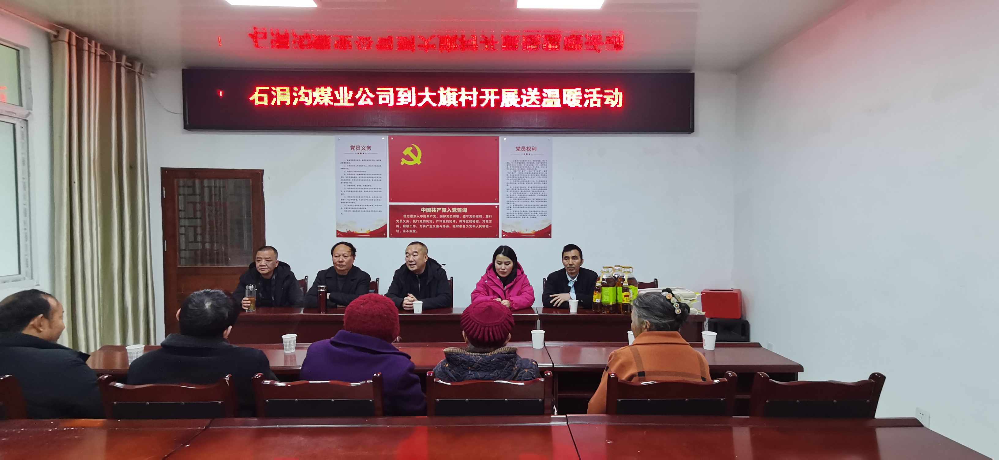寒冬送暖,情系乡村。为扎实推进乡村振兴帮扶工作,把企业的关怀与温暖送到帮扶村群众和驻村干部心坎上,1月29日,川煤集团石洞沟煤业工会主席及工会办工作人员前往乡村振兴帮扶点大旗村,开展冬日送温暖慰问活动,走访慰问困难群众,亲切关怀驻村干部,以实际行动践行国企社会责任与担当。