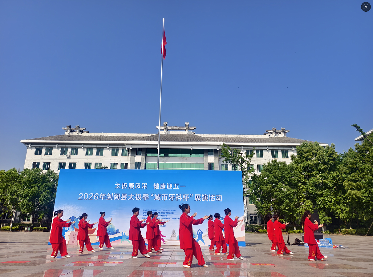 4月25日,剑阁县“太极展风采 健康迎‘五一’”太极拳展演活动在县政府行政中心广场举行。此次活动由县总工会、县卫健局联合主办,县文广体旅局指导,旨在弘扬传统武术文化,推进全民健身,丰富职工精神文化生活。
