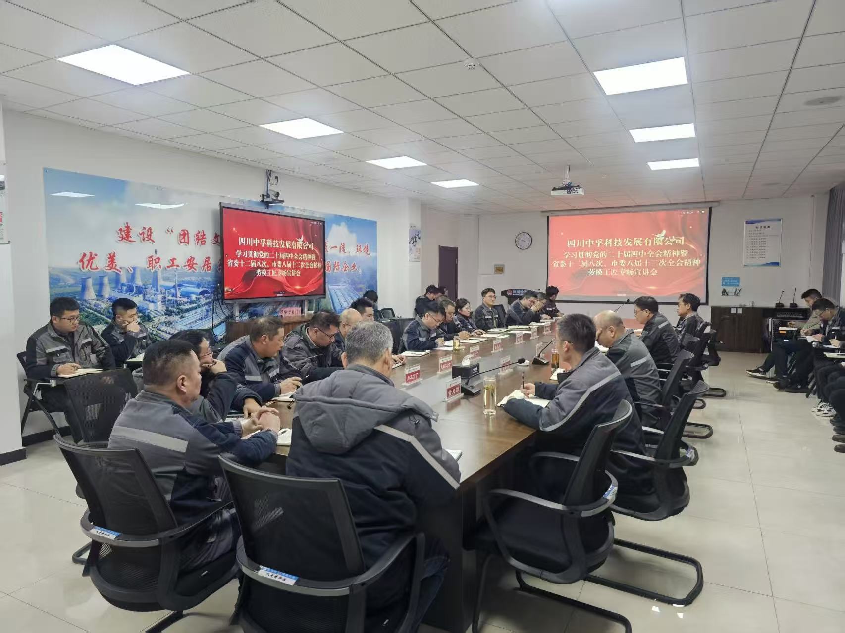 1月26日,四川中孚科技发展有限公司举办学习贯彻党的二十届四中全会及省委十二届八次、市委八届十二次全会精神劳模工匠专场宣讲会,推动政策精神走进企业一线、浸润职工心田。四川省劳动模范郭庆峰担任主讲,公司领导班子、全体干部职工共50余人现场聆听宣讲。